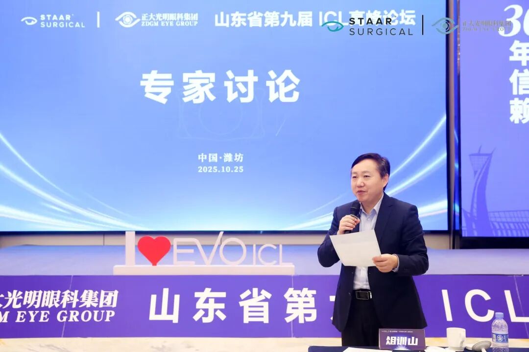 2025年10月25日,山东省第九届ICL高峰论坛在潍坊汉斯威士酒店圆满落幕。本次论坛由正大光明眼科集团主办,STAAR Surgical及上海得视康医疗器械协办,汇聚了来自全国多地眼科领域的领军专家与中青年骨干,围绕ICL晶体植入技术的个性化设计、全流程管理、患者运营及临床难点等热点议题展开深度交流,共探ICL技术的创新路径与发展趋势。