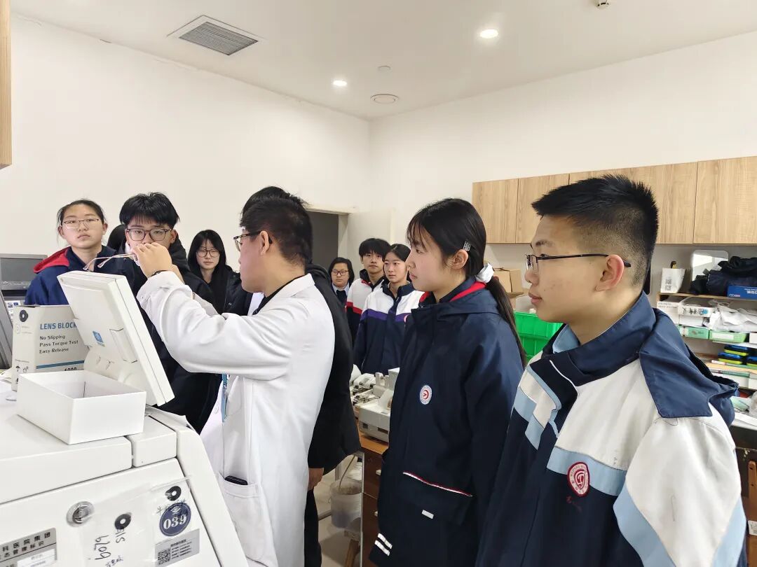 活动伊始,同学们怀着好奇与期待,在工作人员的带领下,有序开启了眼科医院探秘之旅。先后走进眼健康管理中心、屈光手术中心、干眼诊疗中心、眼科门诊和特检中心等区域,深入了解了爱眼护眼知识,近距离感受眼科医学的魅力。